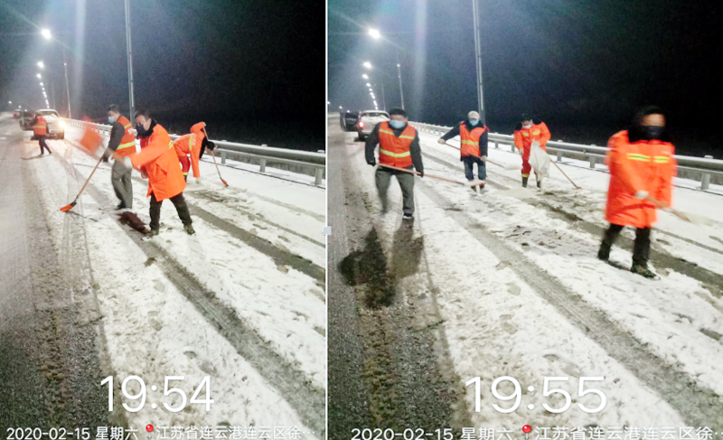 2月15日晚18:00時,徐圩悅升公司班子成員及各分公司黨政負(fù)責(zé)人全員出動,帶領(lǐng)18名突擊隊員快速趕赴新區(qū)上海路、徐圩大道、徐新路、金港路等主要交通要道,連續(xù)奮戰(zhàn)4個多小時,對橋梁、彎道等重點防滑路段進(jìn)行清雪防凍處理,共鋪灑融雪劑10余噸?!跋愫忧榫?、幸福家園”兩個職工小區(qū)防控疫情值守人員,不懼嚴(yán)寒,冒著大雪,在小區(qū)加強(qiáng)巡邏防控。該公司應(yīng)急大隊按照徐圩新區(qū)防疫指揮部要求,配合社區(qū)對珠江鋼管相關(guān)路道進(jìn)行封閉管控。