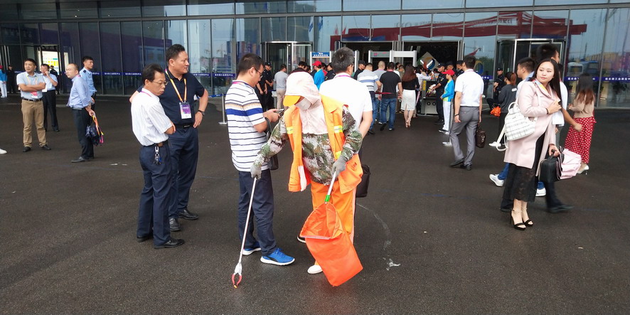 9月14日,連續(xù)忙碌了兩個禮拜的職工們還沒來得及休息,便又投入到“連博會”的準備工作中去。由于本屆“連博會”共有來自27個國家和地區(qū)的420家企業(yè)參展,展覽總面積達3.7萬平方米,各家展商在布置展臺時,各類生活垃圾、裝修垃圾等一度將該公司布設的100多個垃圾桶都塞滿了,在安排好人工清理的同時,該公司還安排垃圾清運車對積存垃圾進行清理清運,組織灑水車對會場及周邊道路進行沖洗,一直到9月18日晚上9點左右才完成準備工作。19日“連博會”開幕當天,負責現(xiàn)場保潔工作的職工們早上6點多就趕到了會場,冒雨在會場周邊開始忙碌,一臺大型清掃車和一臺灑水車也在會場旁隨時待命。到了中午,當展商們在室內小憩的時候,室外的職工們?yōu)榱瞬坏⒄`事,站在風口匆匆地扒拉兩口混雜著雨水的盒飯,就又投入到緊張的清理工作中去。僅19號開幕當天,累計清理各類垃圾7噸左右,為“連博會”的正常召開提供了一個干凈、整潔的會場環(huán)境。