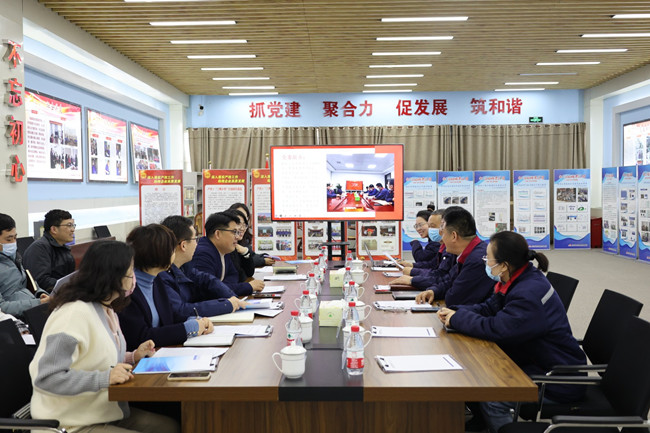城建集團(tuán)一行人先到展廳參觀了三三工程展板,劉殿龍對(duì)氨綸公司黨建品牌創(chuàng)建思路邏輯、具體內(nèi)容作了介紹,雙方就其中難點(diǎn)、亮點(diǎn)進(jìn)行了深入研討。隨后,大家到紅色長(zhǎng)廊、八期生產(chǎn)線、三組聯(lián)建活動(dòng)室進(jìn)行實(shí)地參觀。