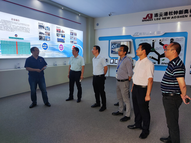 科技鎮(zhèn)長團(tuán)一行先后參觀了展廳、八期生產(chǎn)線、自動包裝線。張斌總經(jīng)理詳細(xì)地介紹了杜鐘氨綸的發(fā)展歷程,公司近年來研發(fā)的功能性氨綸的主要特點(diǎn)以及后道產(chǎn)品的開發(fā)與銷售。在參觀八期生產(chǎn)線的過程中,張總重點(diǎn)介紹了公司分布式能源的運(yùn)行情況和公司近年來在生產(chǎn)一線推行智能化、自動化的實踐情況。吳團(tuán)長一行對公司注重產(chǎn)品研發(fā)、推行生產(chǎn)智能化與自動化方面所做的努力表示肯定,希望下一步持續(xù)發(fā)揮優(yōu)勢,不斷加大研發(fā)投入,為全市新材料板塊發(fā)展壯大貢獻(xiàn)力量。