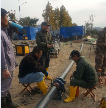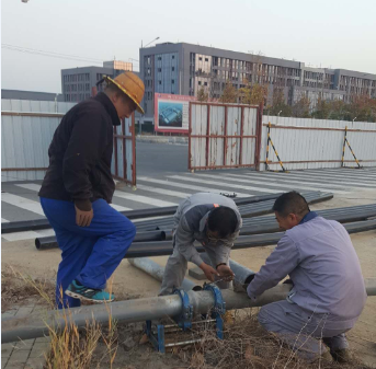 鏡頭二:負(fù)責(zé)匯晶路新建橋梁鈣液管道遷建工程的供鹵組聯(lián)合復(fù)曬灘人員早早投入到施工操作中,該項(xiàng)工程是為了配合開(kāi)發(fā)區(qū)匯晶路與躍湖路新建連通橋梁的需要,需要遷改鈣液管道160米,工程造價(jià)6萬(wàn)元。