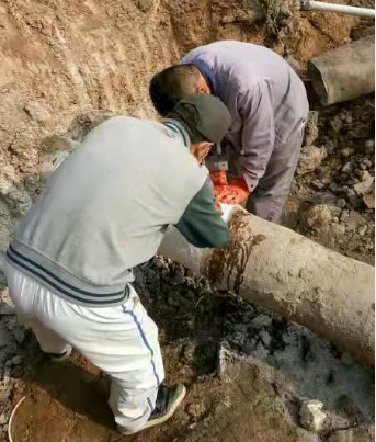 鏡頭三:東輸灌西的鈣液管道因使用年久老化,在新東方大道路下的穿越自然損壞,為了不影響鈣液銷(xiāo)售,搶修工作正“馬不停蹄”!