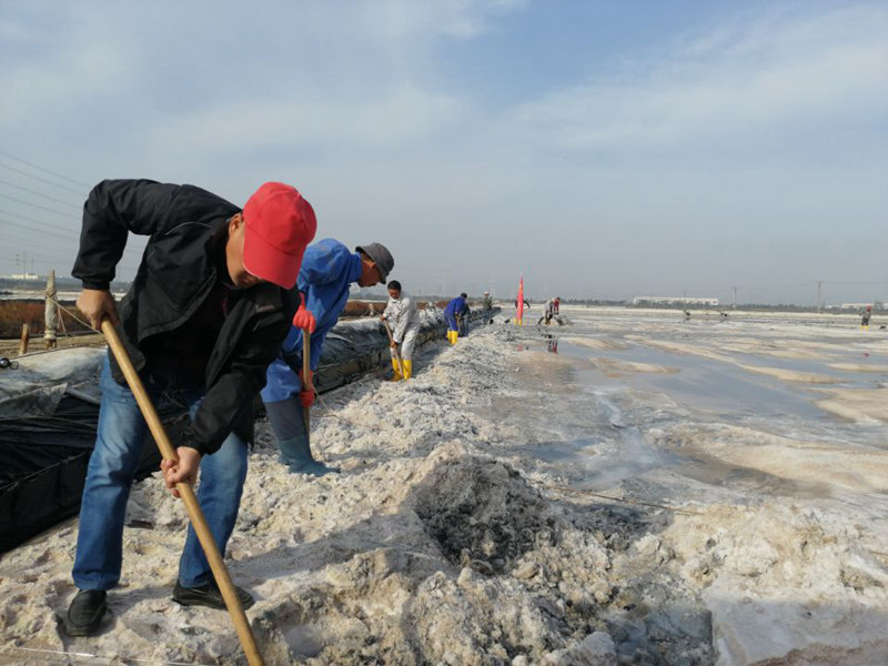 大浦工區(qū)將黨日活動開到了生產(chǎn)一線,在二組灘頭全體黨員面對黨旗重溫了入黨誓詞:“我志愿加入中國共產(chǎn)黨,擁護黨的綱領,遵守黨的章程………”一字一句鏗鏘有力、滿懷激情,進一步增強了黨員責任感和使命感,提高了黨組織的凝聚力和戰(zhàn)斗力。在隨后黨員突擊隊穿好勞動護具,做好安全措施,立即投入到扒鹽工作中。大家分工合作、協(xié)同配合,在晶瑩剔透的鹽池里盡情的揮灑著汗水。據(jù)悉,本次突擊人工扒鹽,面積230公畝,扒鹽量達3500噸,可為企業(yè)增收70萬元。