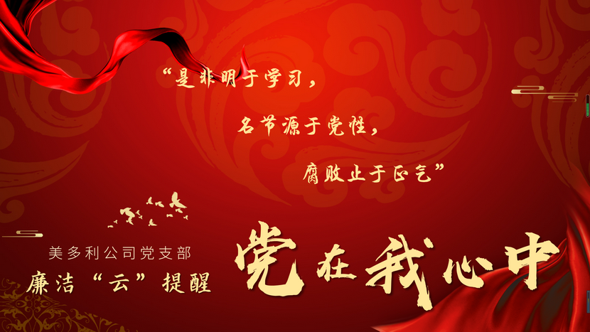 “是非明于學(xué)習,名節(jié)源于黨性,腐敗止于正氣”,“撐起自律的綠傘,秉公道執(zhí)仁政,守得四季常青,為廉政保駕;豎起正義的風帆,劈歪風斬邪浪,迎來海闊天空,為廉潔護航。”黨的一百零一周年生日來臨之際,美多利公司全體黨員收到支部發(fā)送的廉潔提醒短信。