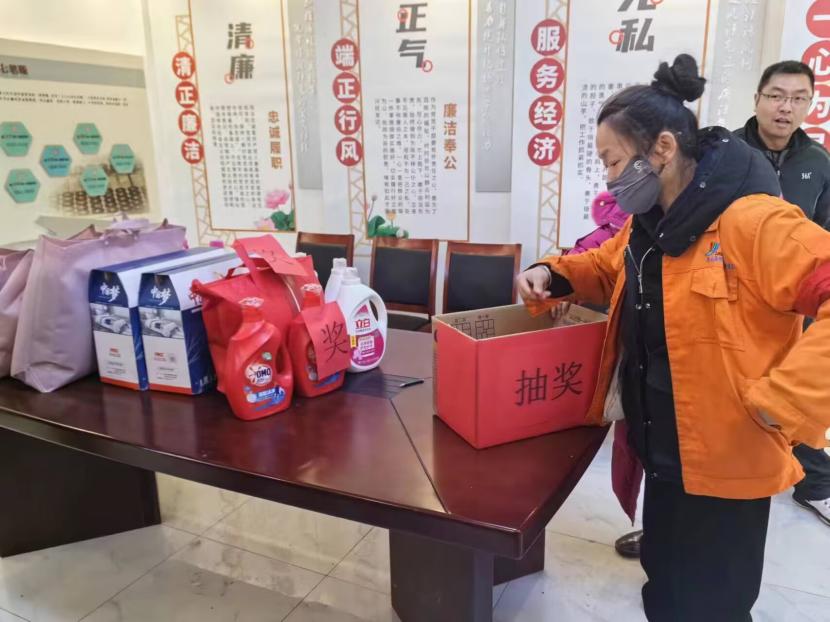 公司分會(huì)精心準(zhǔn)備了多款好禮,幸運(yùn)抽獎(jiǎng)活動(dòng)可謂是“只要你來就有獎(jiǎng)”,中獎(jiǎng)率100%。伴隨著一次次開獎(jiǎng)、一陣陣尖叫,現(xiàn)場歡聲笑語不斷,喜慶氛圍濃厚。