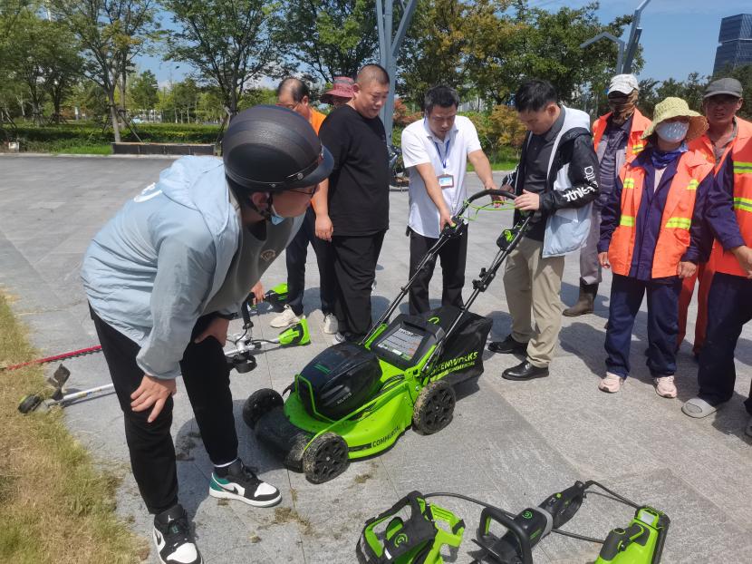 上午9時(shí)50分,活動(dòng)正式拉開帷幕。首先進(jìn)行的是設(shè)備展示環(huán)節(jié),在工作人員的講解下,了解到這些設(shè)備擁有著高效節(jié)能、操作簡(jiǎn)便、噪音低、輕便等特點(diǎn)。隨后進(jìn)入的是設(shè)備試用階段,綠化分公司和益豐園林分公司的專業(yè)技術(shù)人員輪番上陣,對(duì)各類電動(dòng)機(jī)械進(jìn)行了實(shí)地操作和演示。他們熟練地操控著機(jī)器,在綠地上留下一道道整齊的線條和一片片平整的草坪。試用過程中,大家紛紛表示,這些新型電動(dòng)機(jī)械不僅提高了工作效率,還大大降低了勞動(dòng)強(qiáng)度,對(duì)于改善工作環(huán)境和提升工作質(zhì)量具有重要意義。