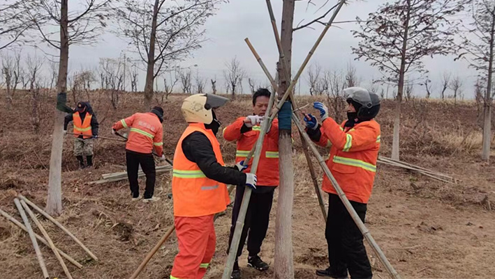 昨日,空氣溫度驟降,伴隨著大雨。綠化分公司立即啟動應急預案,各班組強化轄區(qū)內(nèi)喬木加固支撐防止樹木倒伏、加挖排水溝保證排澇處理等措施。應急維護工作全體人員24小時值待命,確保第一時間將險情排除。