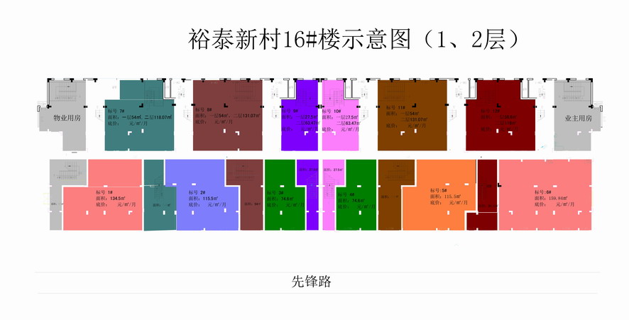 出租裕泰新村16#樓1、2層房屋,建筑面積約為1762.78平方米。其中1層建筑面積為995.66平方米,設(shè)有6個(gè)標(biāo)段(標(biāo)號(hào)1#-6#);1-2層建筑面積767.12平方米,設(shè)有6個(gè)標(biāo)段(標(biāo)號(hào)7#-12#),共計(jì)12個(gè)標(biāo)段(見附件4)。意向報(bào)名人可在招租公告發(fā)布5日內(nèi)前往進(jìn)行實(shí)地考察。