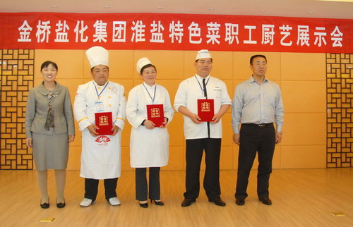 5月19日上午,金橋鹽化集團淮鹽特色菜職工廚藝展示會在淮鹽大酒店隆重舉辦。公司黨委副書記、紀委書記、工會主席盧明生致歡迎詞,集團公司工會副主席李嵐芹宣布比賽開始。來自集團公司各基層單位的13名技藝精湛的廚師做出了26道特色佳肴,經(jīng)過評委會認真品評,臺南鹽場王樹偉、青口鹽場盧燕獲一等獎,其他選手分獲二、三等獎。(司宣)