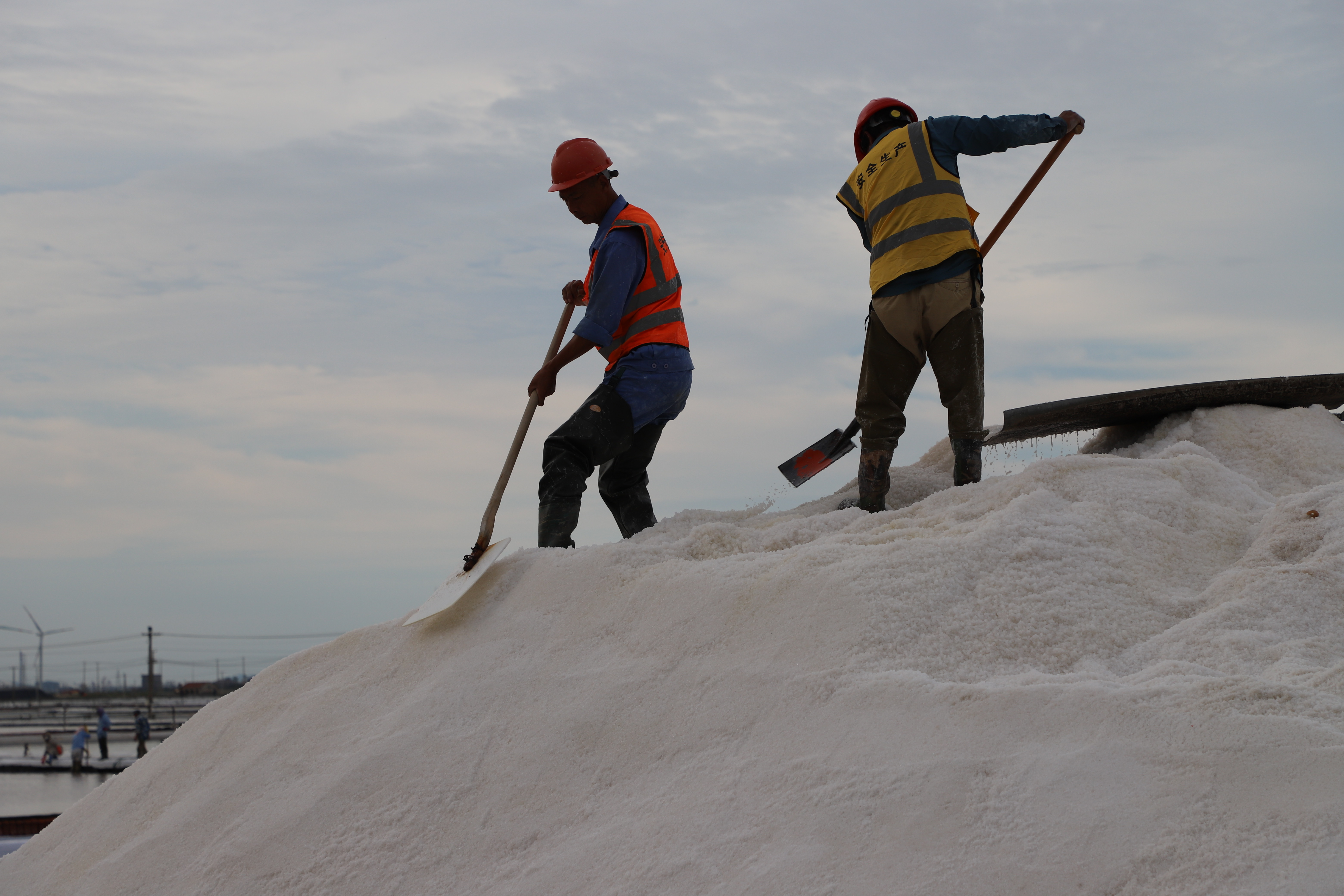 原鹽生產(chǎn)不松勁。每年的國慶假期總是與“秋扒”不期而遇。由于受連續(xù)的陰雨天氣影響,今年的秋扒工作一度延后。9月29日--9月30日,凌晨5點(diǎn)鐘,日曬鹽田的鹽圩小路像往常一樣成了一道最美的風(fēng)景線,鹽工們?nèi)蔽溲b奔赴各自工作點(diǎn)位進(jìn)行收拉塑布、排淡等工作。為了搶時間,抓進(jìn)度,鹽工們緊鑼密鼓地忙碌起來,籌備扒鹽工作,天氣剛轉(zhuǎn)好,只見有的在整理塑布,有的破碴,10月2日,10臺扒鹽機(jī)組全部運(yùn)轉(zhuǎn)起來,潔白的鹽廩逐漸擴(kuò)大,節(jié)日期間將扒鹽30000余噸。