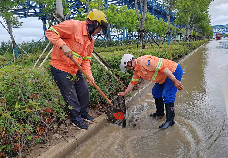 717日夜晚,徐圩地區(qū)再次引來強(qiáng)風(fēng)強(qiáng)降雨天氣,悅升公司以“迅”治“汛”立即啟動應(yīng)急預(yù)案,全員出動治洪澇。