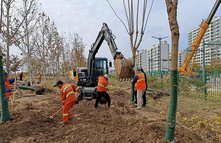雖然天氣日漸寒冷,但是在燈塔路張圩河公園工程現(xiàn)場(chǎng)卻是一幅火熱的施工場(chǎng)景,一棵棵新鮮栽植的樹(shù)木成為了晚秋里的靚麗風(fēng)景線(xiàn)。